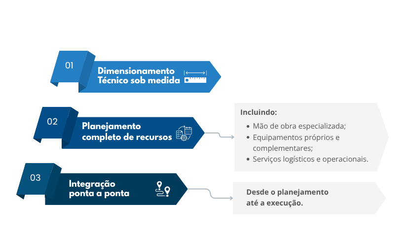 Para viabilizar seu projeto com segurança, eficiência e inteligência operacional, desde a concepção e planejamento até a execução, com controle rigoroso e atuação consistente nos setores de óleo e gás, energia, indústria e infraestrutura.